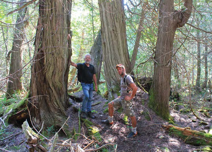 En comptant à peine 15 minutes de marche supplémentaires, on arrive dans un milieu qui coupe le souffle. Certains des arbres situés au milieu de l’aire ciblée pour la coupe sont des thuyas d’un mètre de diamètre, vieux de 600 à 650 ans. Cette aire renferme aussi des bouleaux et des érables d’une taille remarquable, un écosystème humide, riche d’une flore et d’une faune variées n’ayant pas encore été caractérisées sur le plan biologique. Il est clair que cet écosystème particulier n’a jamais été exploité.