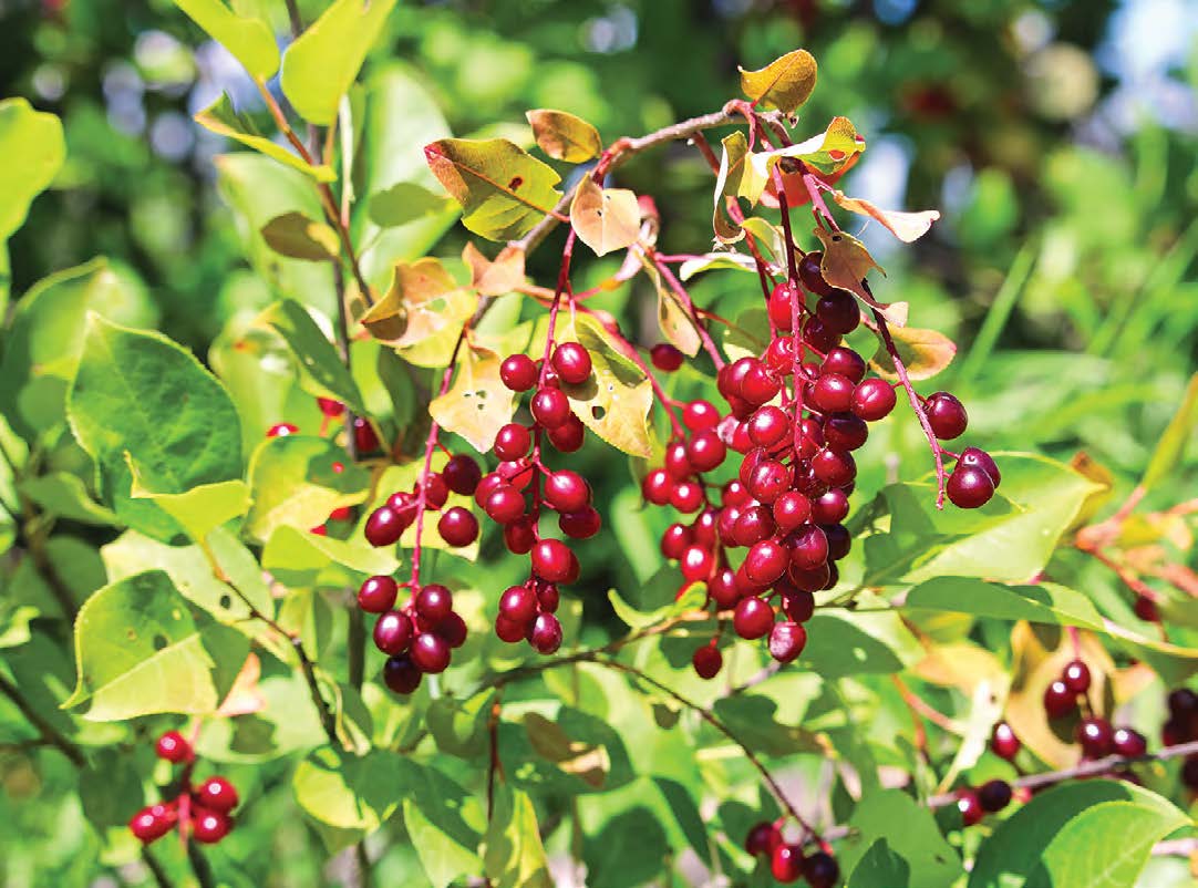 Le cerisier de Virginie (Prunus virginiana), qui produit des drupes qu’on appelle parfois cerises à grappes, cerises sauvages, chokecherries, ou poqwa’lamgewei en mi’gmaq. Photo : iStock