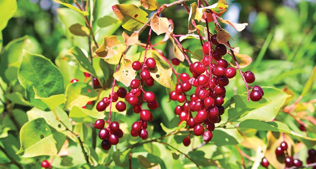Le cerisier de Virginie (Prunus virginiana), qui produit des drupes qu’on appelle parfois cerises à grappes, cerises sauvages, chokecherries, ou poqwa’lamgewei en mi’gmaq. Photo : iStock