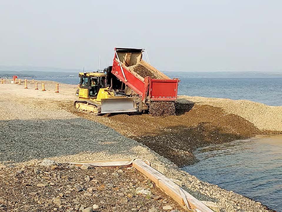MARIA | Les plus importants travaux de protection des berges en cours en Gaspésie sont réalisés depuis le début de juillet à Maria. Ils consistent à recharger la plage de la municipalité sur une distance de 1,2 kilomètre, de façon à soustraire un secteur résidentiel, commercial et institutionnel aux assauts marins.