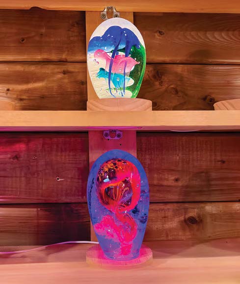 Les reliquaires peuvent être transformés en sources lumineuses grâce à des bases en bois munies d’ampoules à DEL. Photo :Johanne Fournier